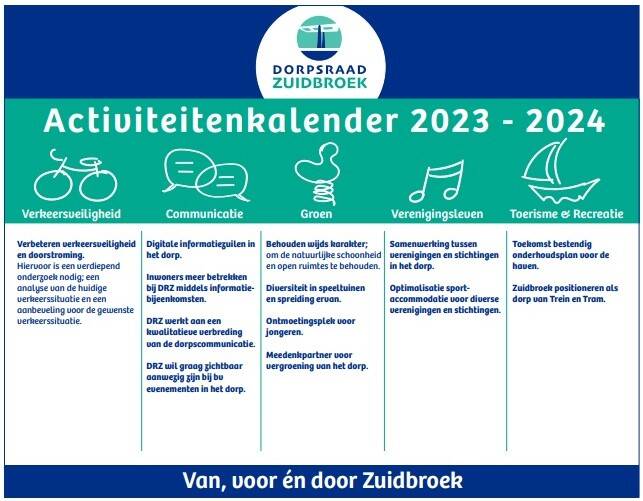 De doelstelling van Dorpsraad Zuidbroek is het op een verantwoorde wijze bevorderen van de leefbaarheid en de ontwikkeling van het dorp Zuidbroek. Wij houden ons bezig met onderwerpen die de gehele gemeenschap van Zuidbroek raken.